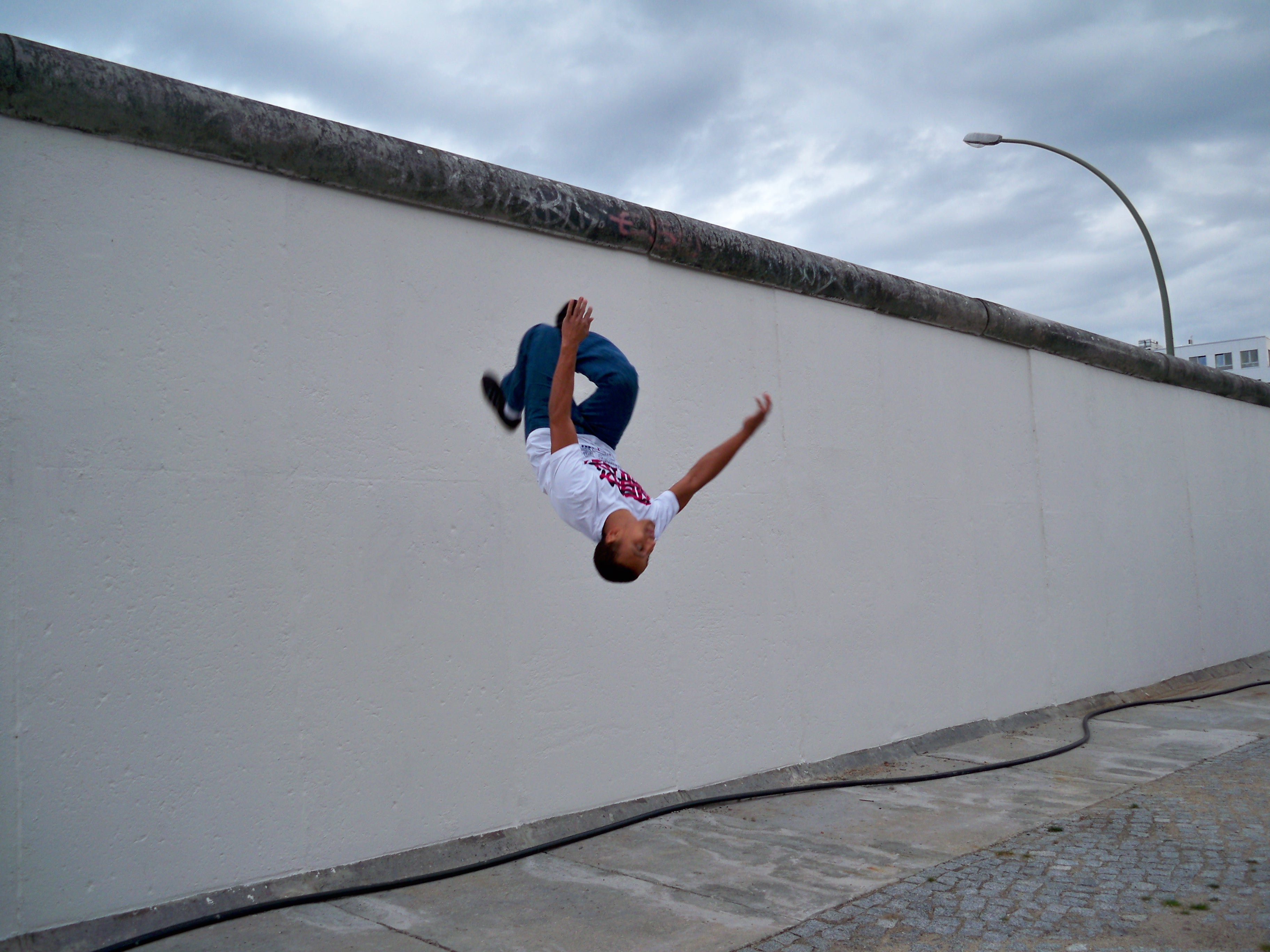 Salto von Raphael Hillebrand an der sanierten East Side Gallery